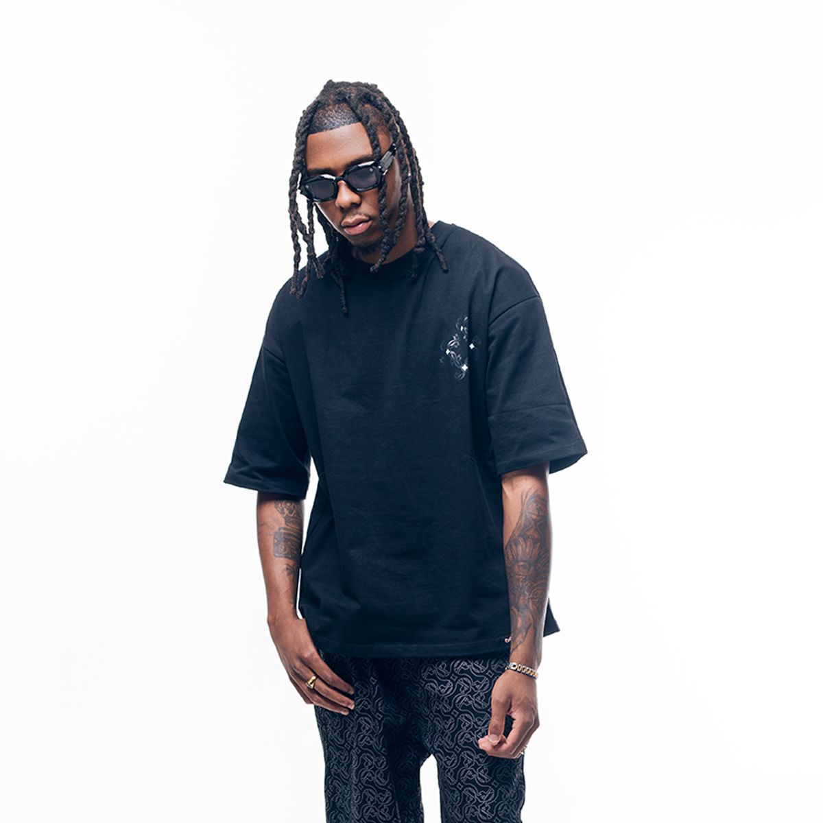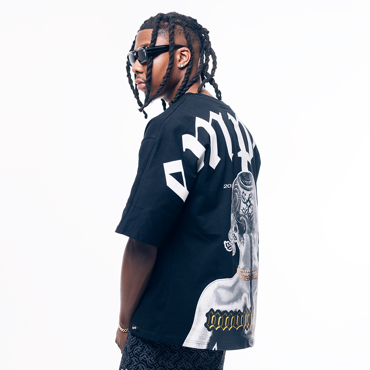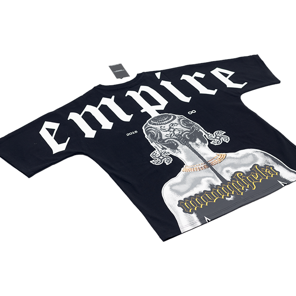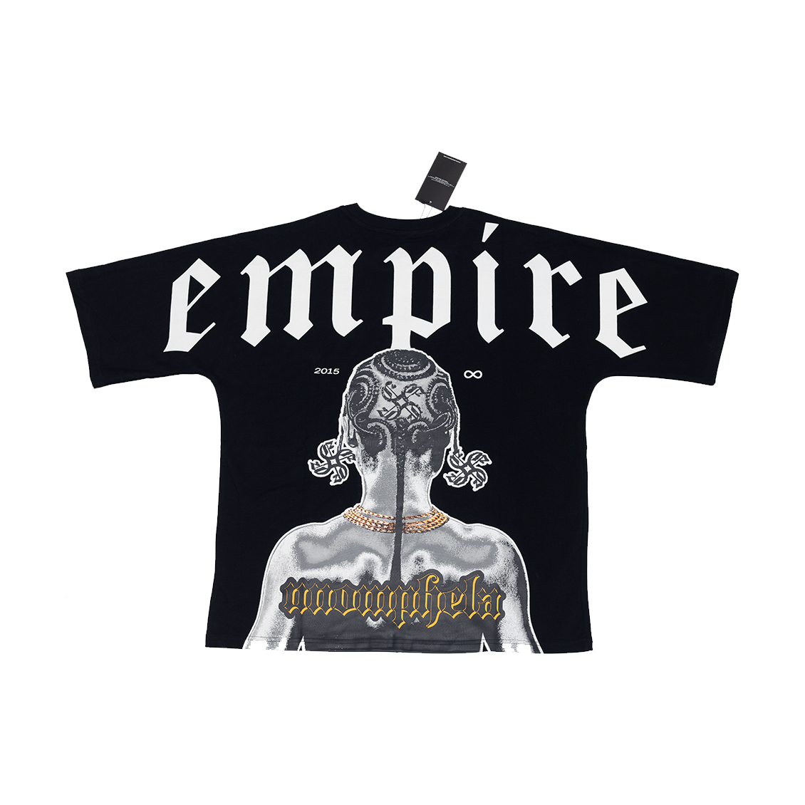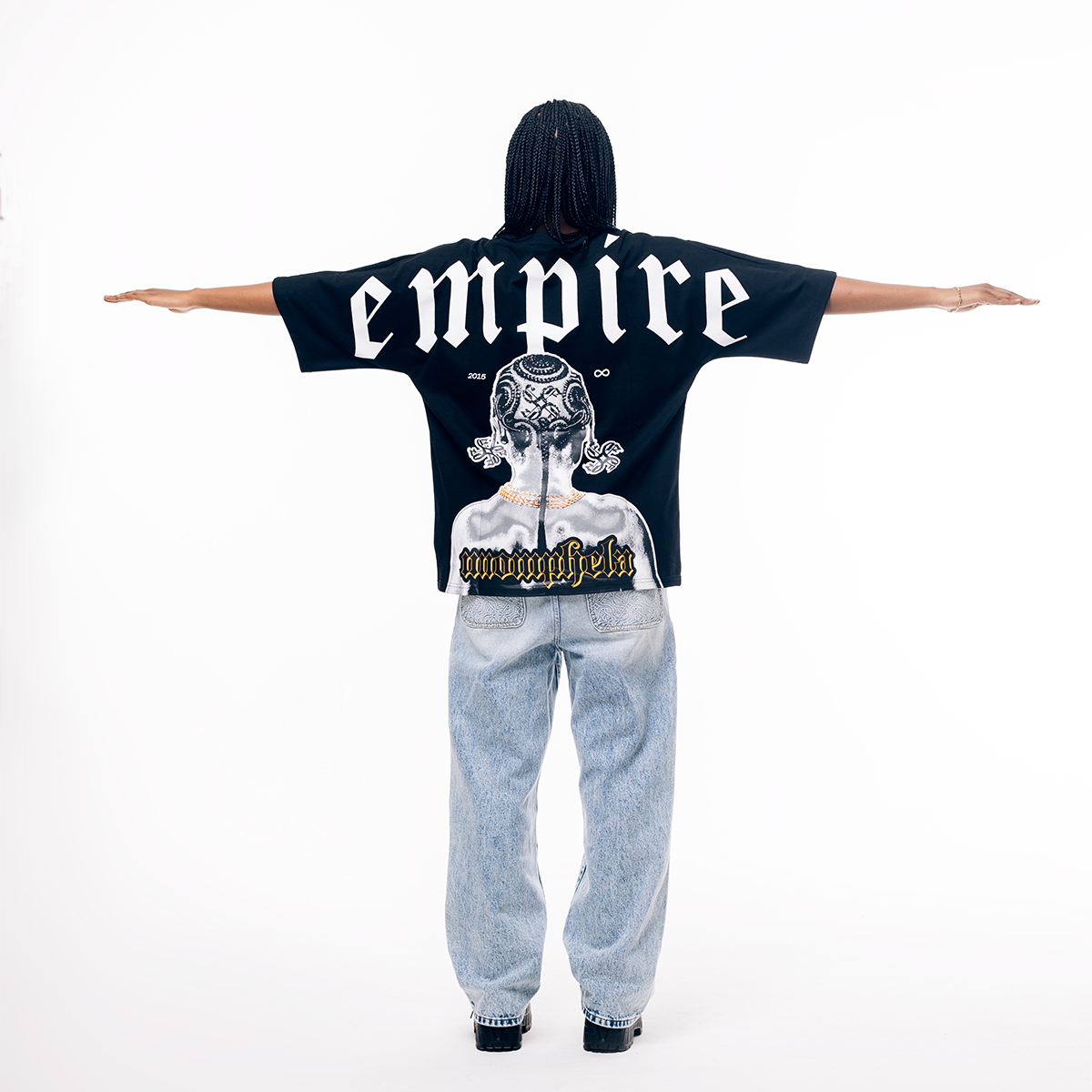 Crafted with 300gsm 100% cotton fabric, this T-shirt is designed to provide both comfort and style. Featuring a front design of the Empire diamond Logo complimented by a back design of an artwork of an African girl braided in Empire Revolve logos and the word Unomphela - a Zulu world translated to Forever making reference to our slogan "Forever Building". The mockneck detail and elongated seamless arms add a touch of sophistication, while the Empire woven tag completes the look.